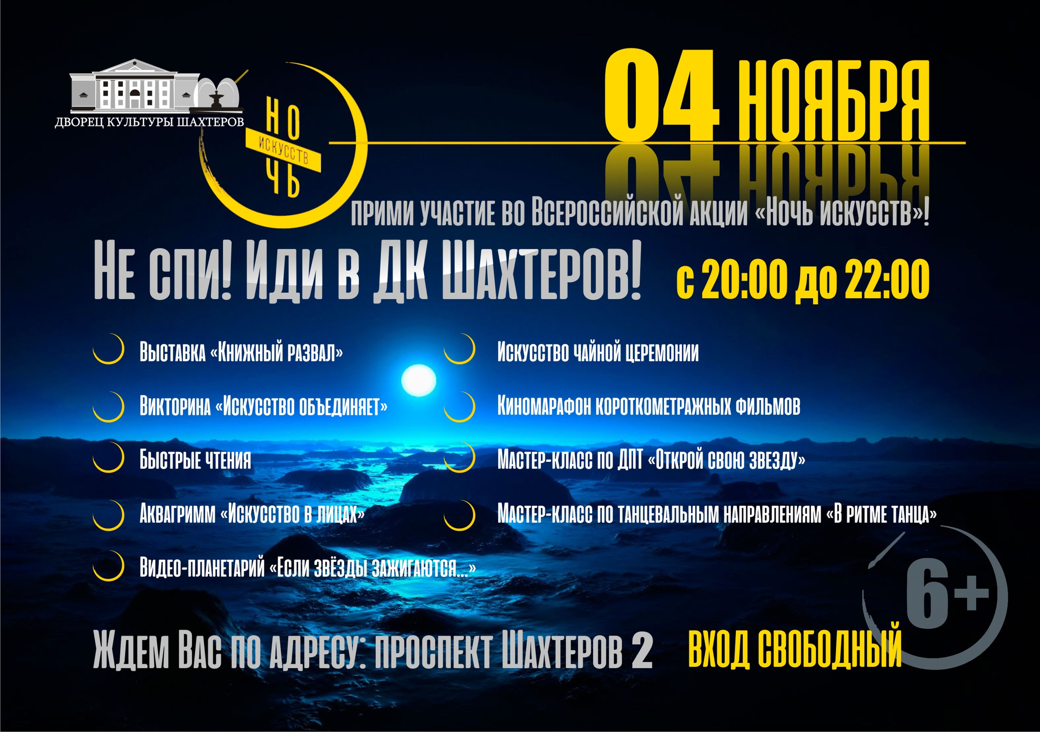 В этом году зрителей ждёт необычное путешествие и космический полёт в "Куклонетарий". В программе вечера: экскурсии по театру, различные мастер-классы для детей, спектакль-эксперимент, аквагрим и многое другое.