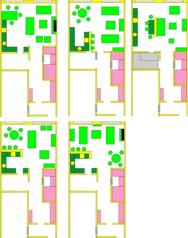 Дашкевич, я бы кухню чуток по другому сделала, наверное. колонны бы поставила слева, а в основной линейке увеличила раб.поверхность. диван и телк тогда поближе к окошку и чуть больше места для стола получится.