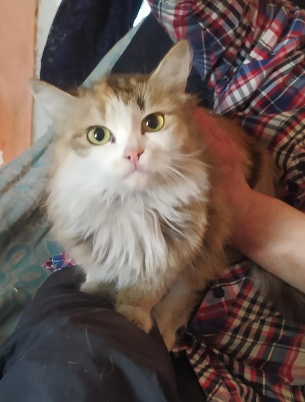 Кот лоялен к хозяйке, пушист, молчалив, озабочен.
