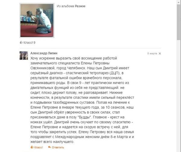 ☝ Елена Петровна очень хорошо снимает спастику, разрабатывает контрактуры!