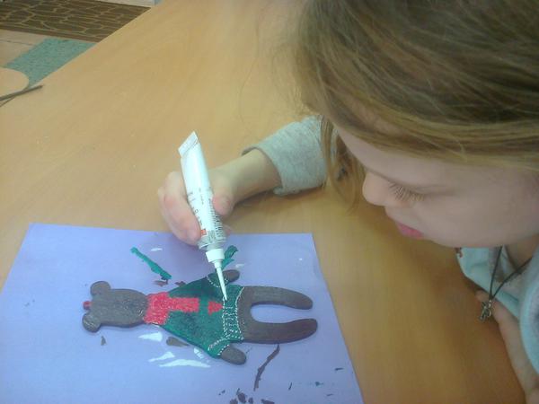 И первые пробы ребят в акриловой росписи