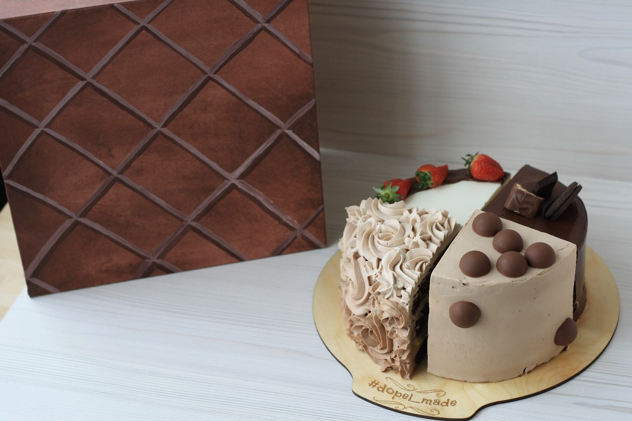 Четвертинки - это торт состоящий из 4 разных кусочков. То есть я делаю 4 торта, режу их на 4 части и формирую наборы))) Вы получаете возможность попробовать 4 разных торта по выгодной цене😉