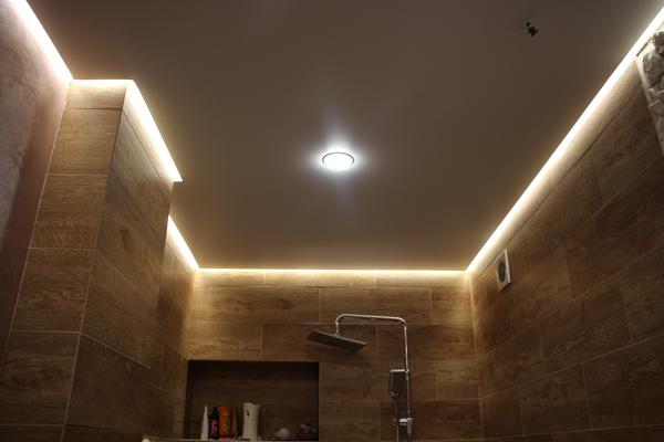 Светодиодная подсветка - эффектное решение в дизайне натяжных потолков. Подсветку можно сделать как вдоль одной из стен, там и по всему периметру помещения. 🔃