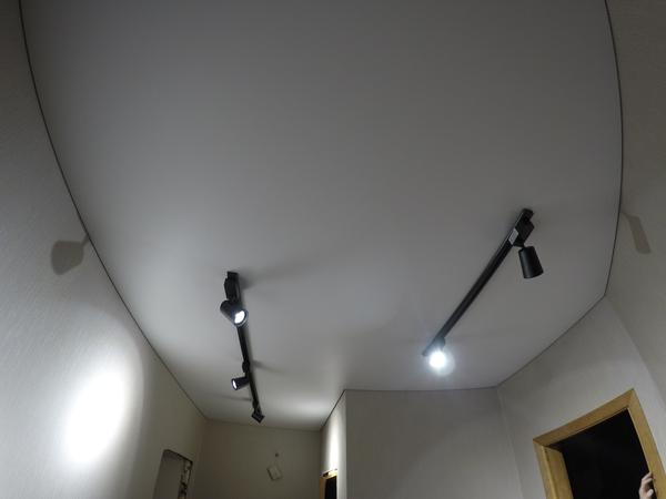 Гладкая фактура матового натяжного полотна на теневом профиле EuroKraab в сочетании c трековой системой освещения и, конечно же, безупречный монтаж наших мастеров. 💡