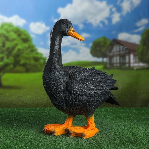 Садовая фигура "Гусь" серый (черный) 18*34*42 см