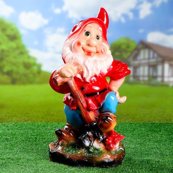 Садовая фигура "Гном с сачком" 35см МИКС