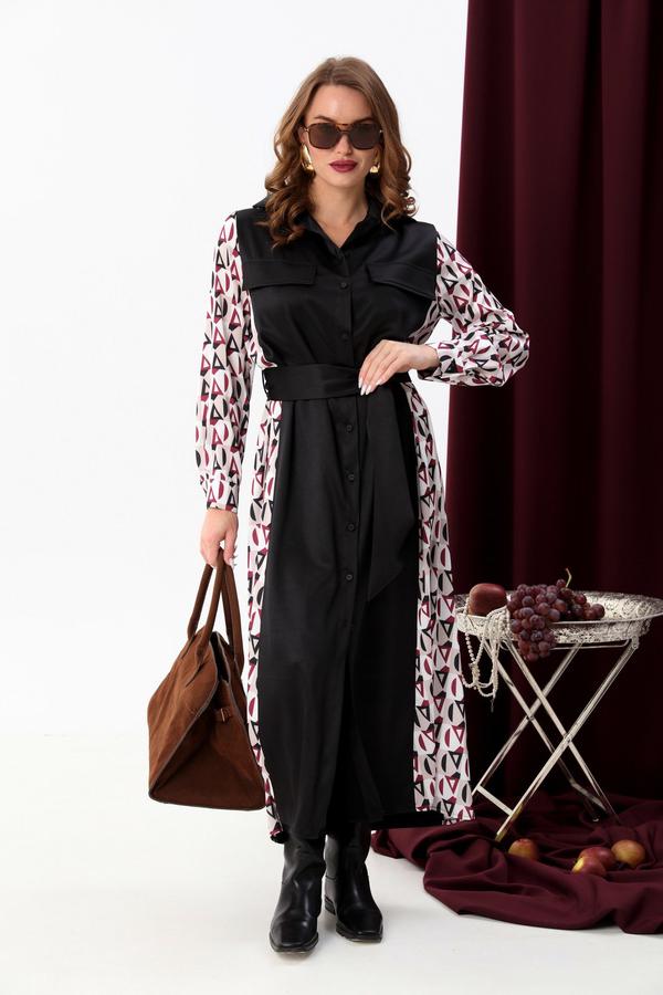NikVa 718-5 чёрный+ромбы бургунди, Платье