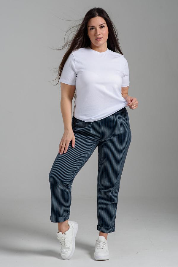 Натали Брюки 9154, полоса серый+черный
