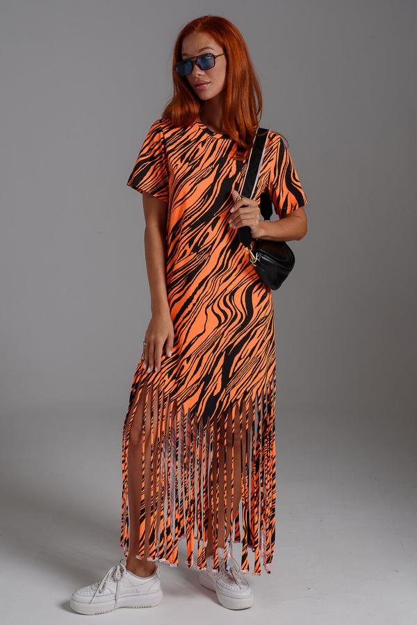 Натали Платье 7480, неон оранжевый+чёрный