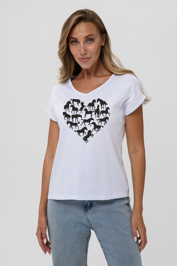 Натали Футболка 8558, белый+лошадь сердце