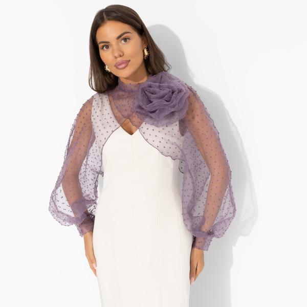 Болеро нарядное со съемным декором, Деловой взгляд (сиреневое, с брошкой)