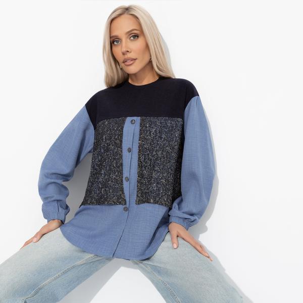 Блуза комбинированная с органзой, Теория красоты (синяя туманность)