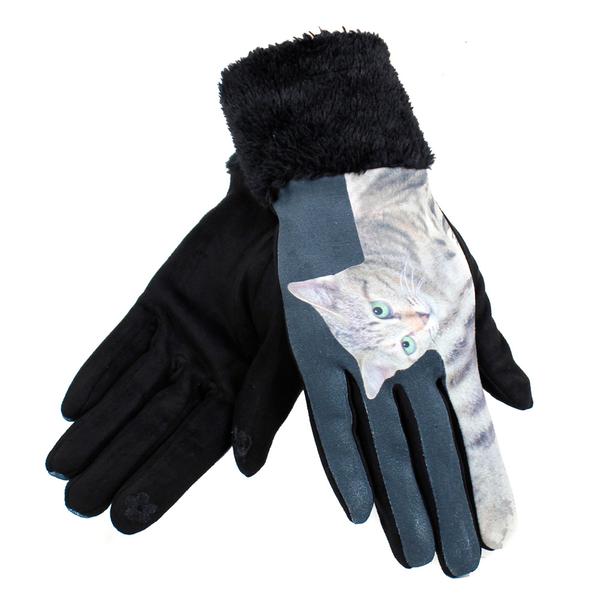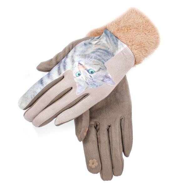 Сенсорные перчатки с кошкой (имитация замши)