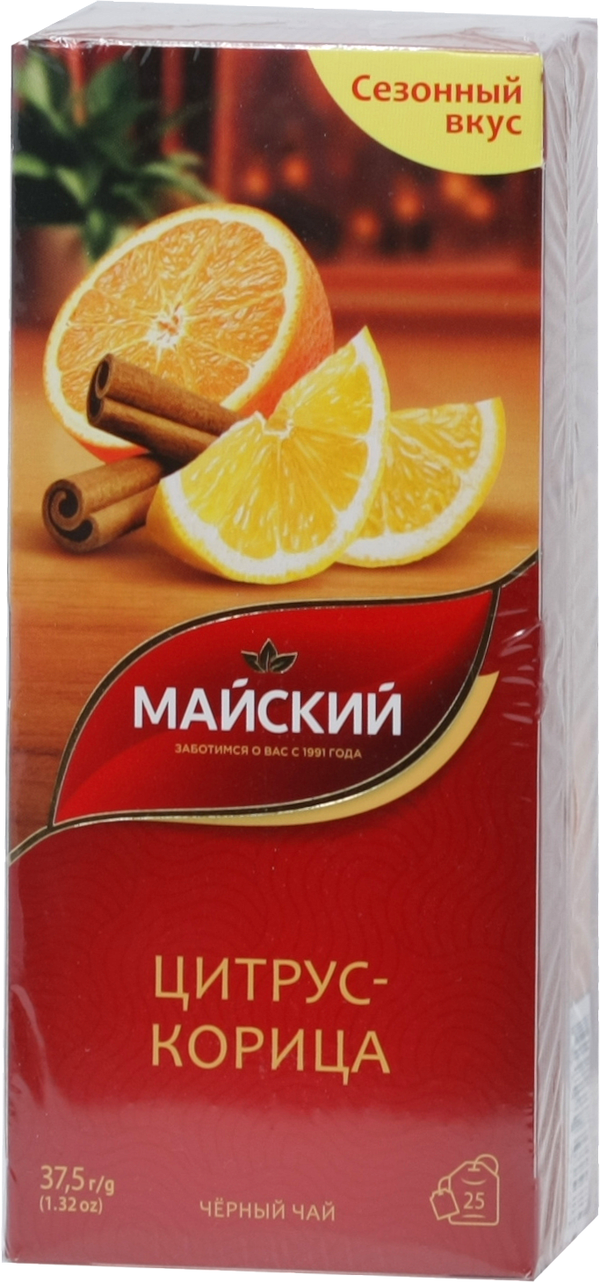Майский. Черный (цитрус и корица) карт.упаковка, 25 пак.