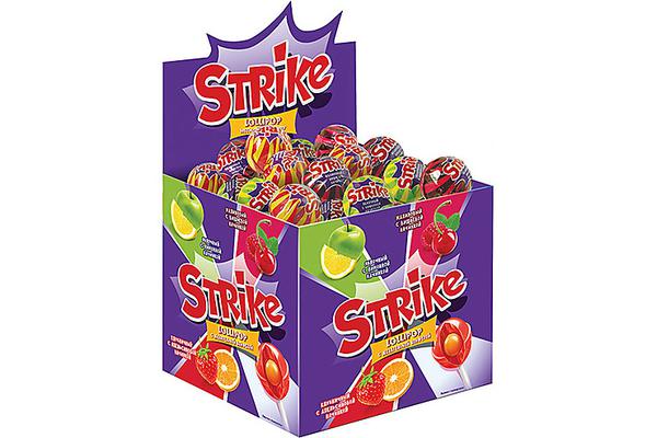 «Strike», карамель на палочке с жевательной конфетой, 11 г (упаковка 50 шт.)