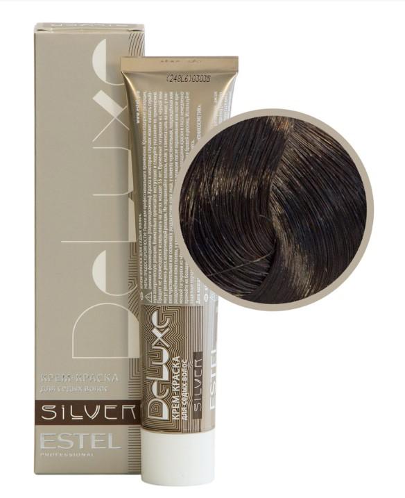 ESTEL De Luxe Silver Крем-краска для седых волос, 4/7 шатен коричневый, 60 мл