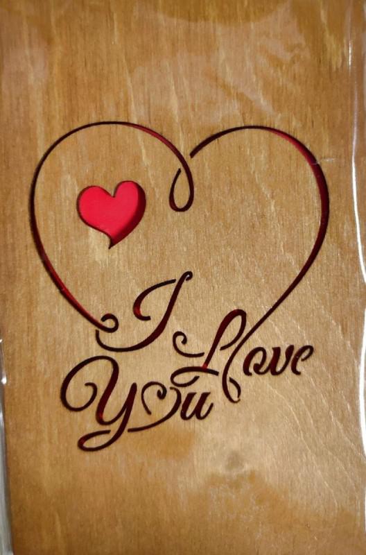 ОТК0064 Стильная деревянная открытка "I love you"