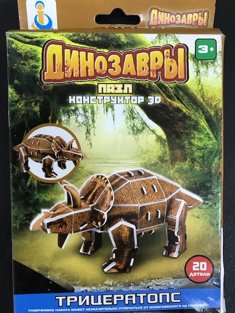 Динозавры. Пазл. Конструктор 3D из пенокартона. Трицератопс (20 деталей)