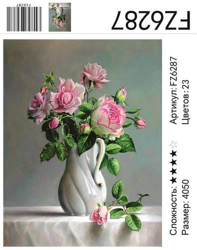 АКВ45 FZ6102 "Розовые цветы в белой вазе на окне", 40х50 см