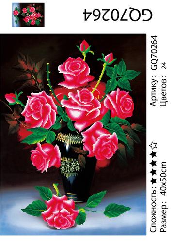 АЧ GQ70264 "Красные розы в черной вазе", 40х50 см