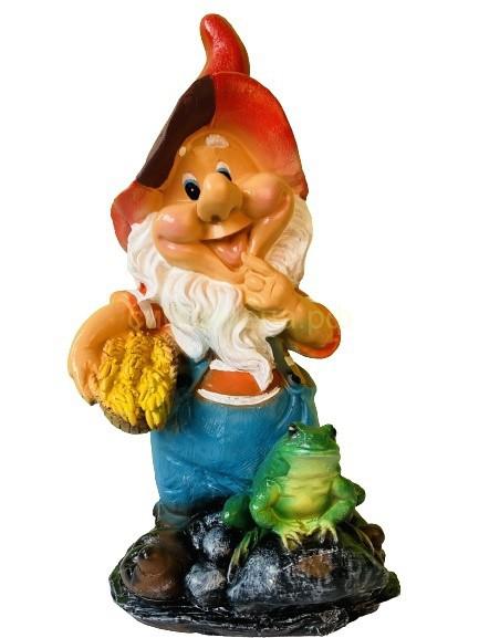 Фигура Гномик с лягушкой на камне Н-41см (Р)
