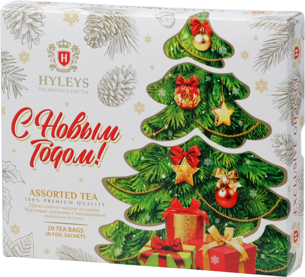 HYLEYS. Новый год. Ассорти Ёлка (белый фон) карт.упаковка, 20 пак.