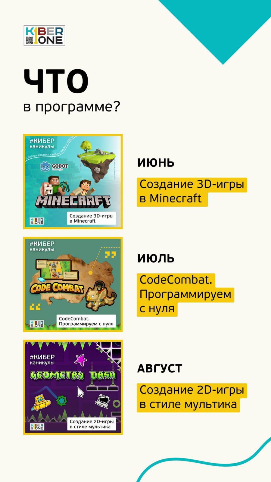 Будем активно прокачиваться в IT, играть в подвижные игры, заводить новых друзей-единомышленников и готовиться к блестящей карьере в сфере цифровых технологий!